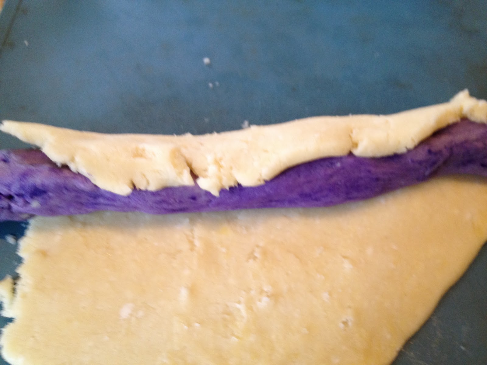 Repeat with the 3rd color and seal the ends by pinching the dough.