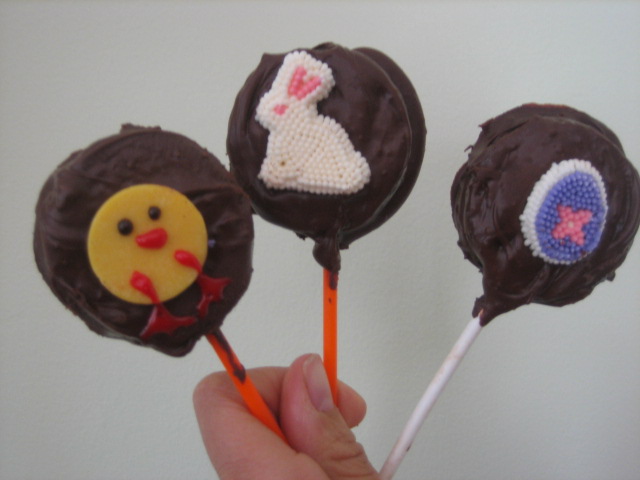 Be sure to blot the stick or holder into the oreo with chocolate so it stays securely.
