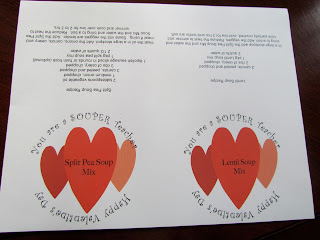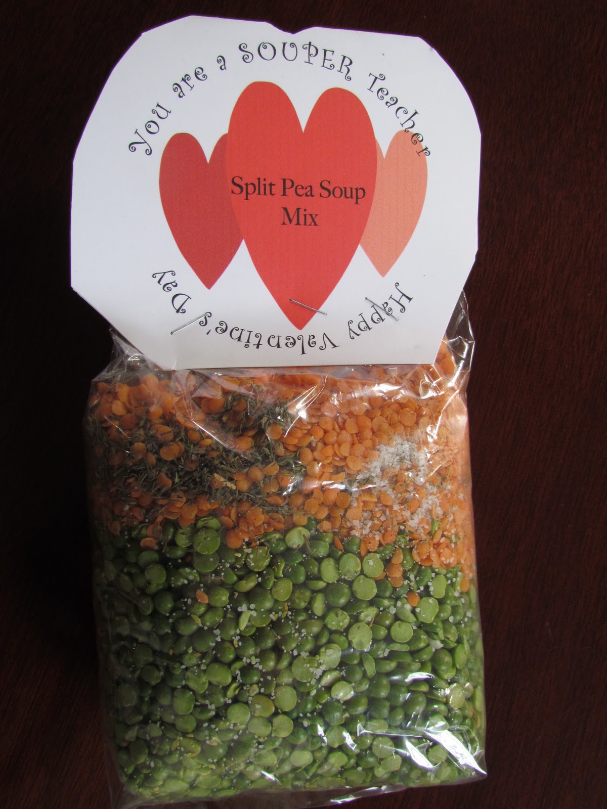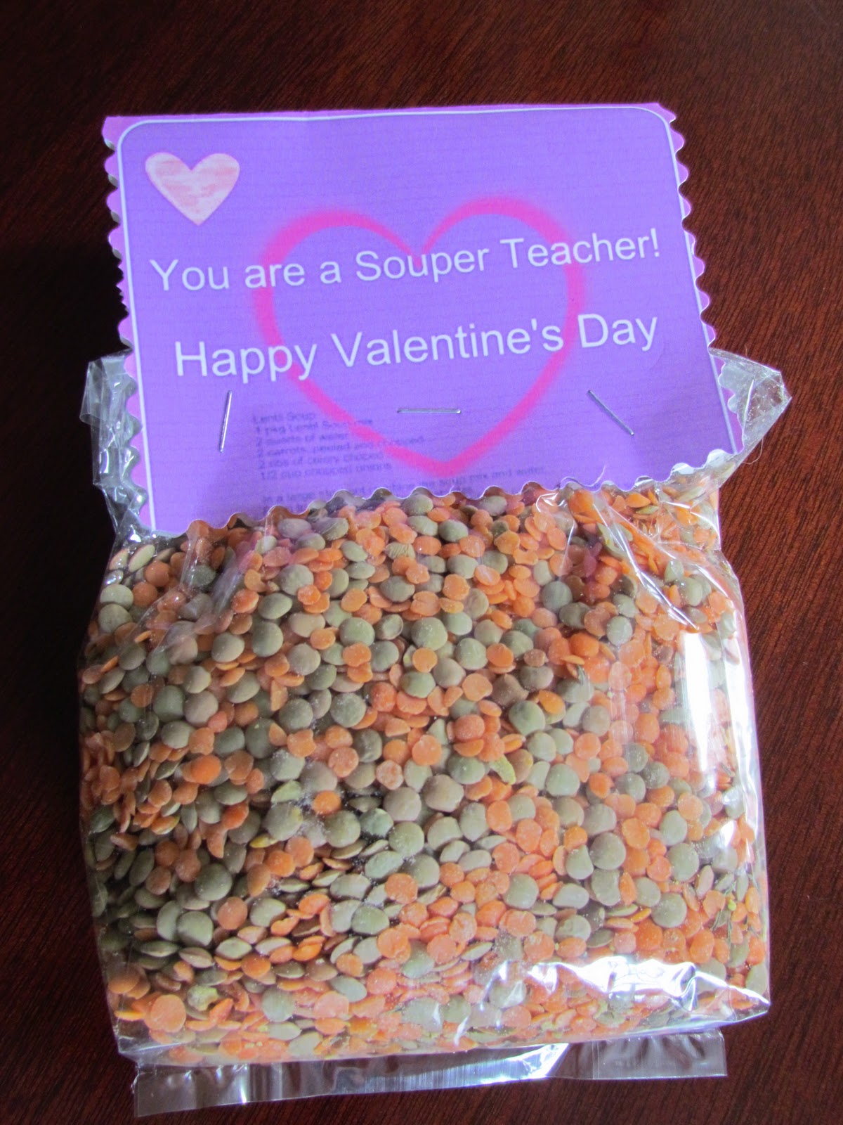 I am always trying to come up with something thoughtful for teachers gifts since they work so hard. I also like to make things that don’t necessarily need to be eaten within a few days. They get enough of those types of gifts. A few years ago we did these Cookies in a Jar which I think went over well. Here is a Souper Valentine’s Day gift for teachers or neighbors.