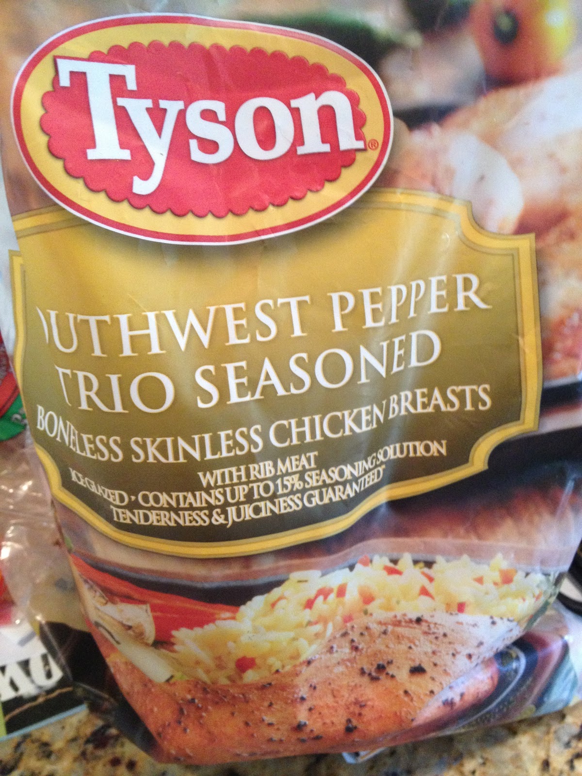 - 1 pound boneless, skinless chicken–I used a bag of Tyson Three Pepper Frozen Chicken Breasts