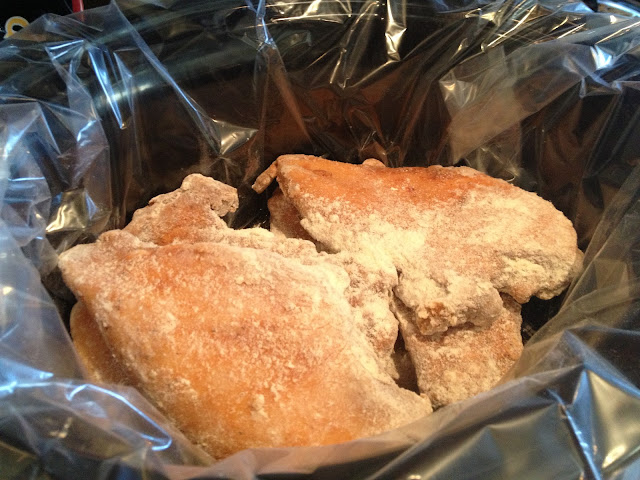 This is such an easy recipe especially since I had the pre-seasoned Tyson Chicken breasts. You probably have most of these things in the house already. NO worries about thawing your chicken breasts either, added my frozen chicken breasts right into the crock pot, and they were perfect.