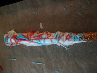 Of course pretzels or “Sparklers” in Red White and Blue are fun too!! (a little fun after making my light sabers) If you do not have the colored chocolate just use red and blue sprinkles.