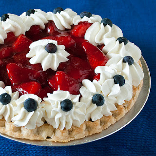 and cool. While the crust is cooling, mix the cream cheese, yogurt, sugar, lemon juice and lemon rind. Spread over the cooled cookie. Arrange the fruit in an American flag design. Blueberries will form the blue field in the upper left hand corner. Raspberries and/or strawberries will be the horizontal stripes.
