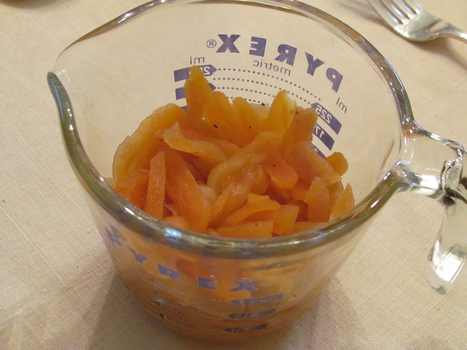 - 1/2 cup thinly sliced dried apricots, about 3 ounces