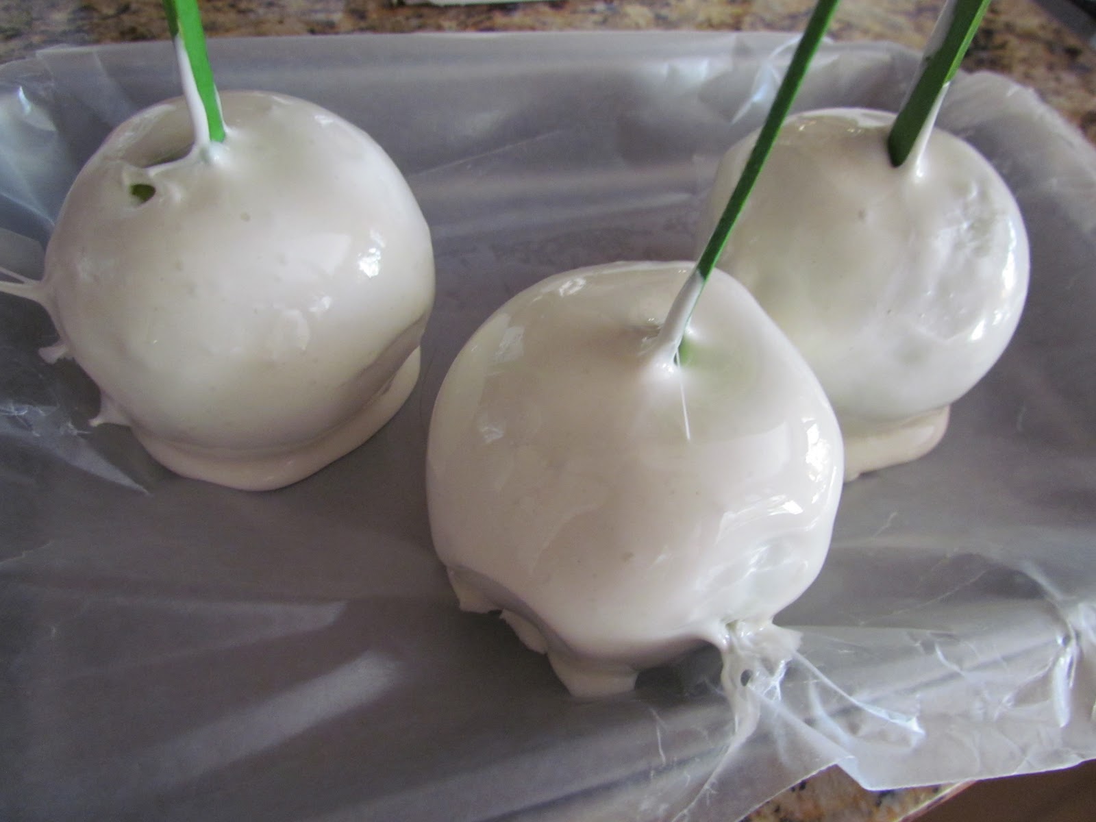 - Remove stems and skewer apples.