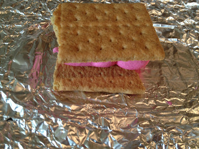 Simply assemble your s’mores using the bunny marshmallows in Reynolds wrap foil; I made two in each piece.