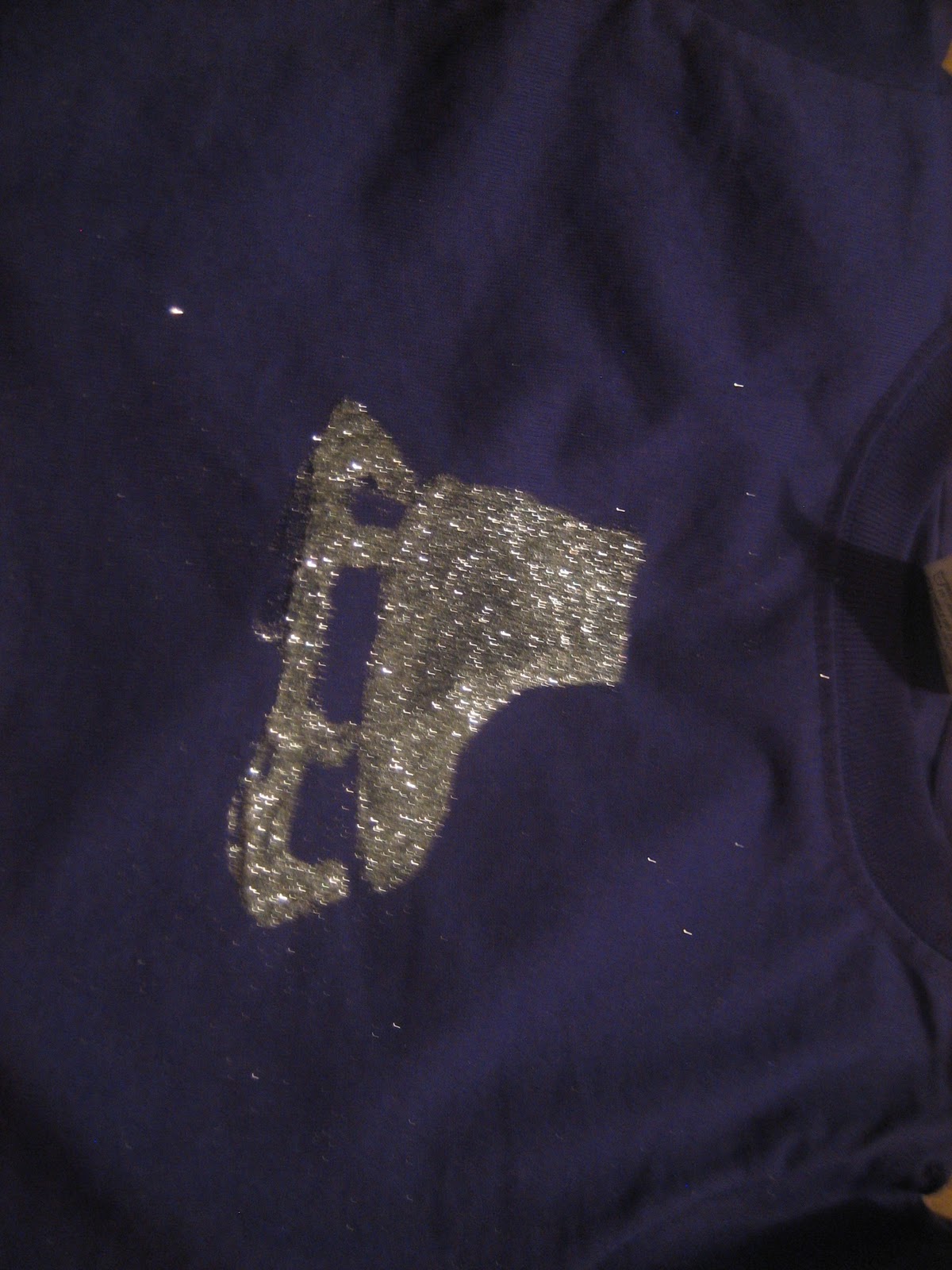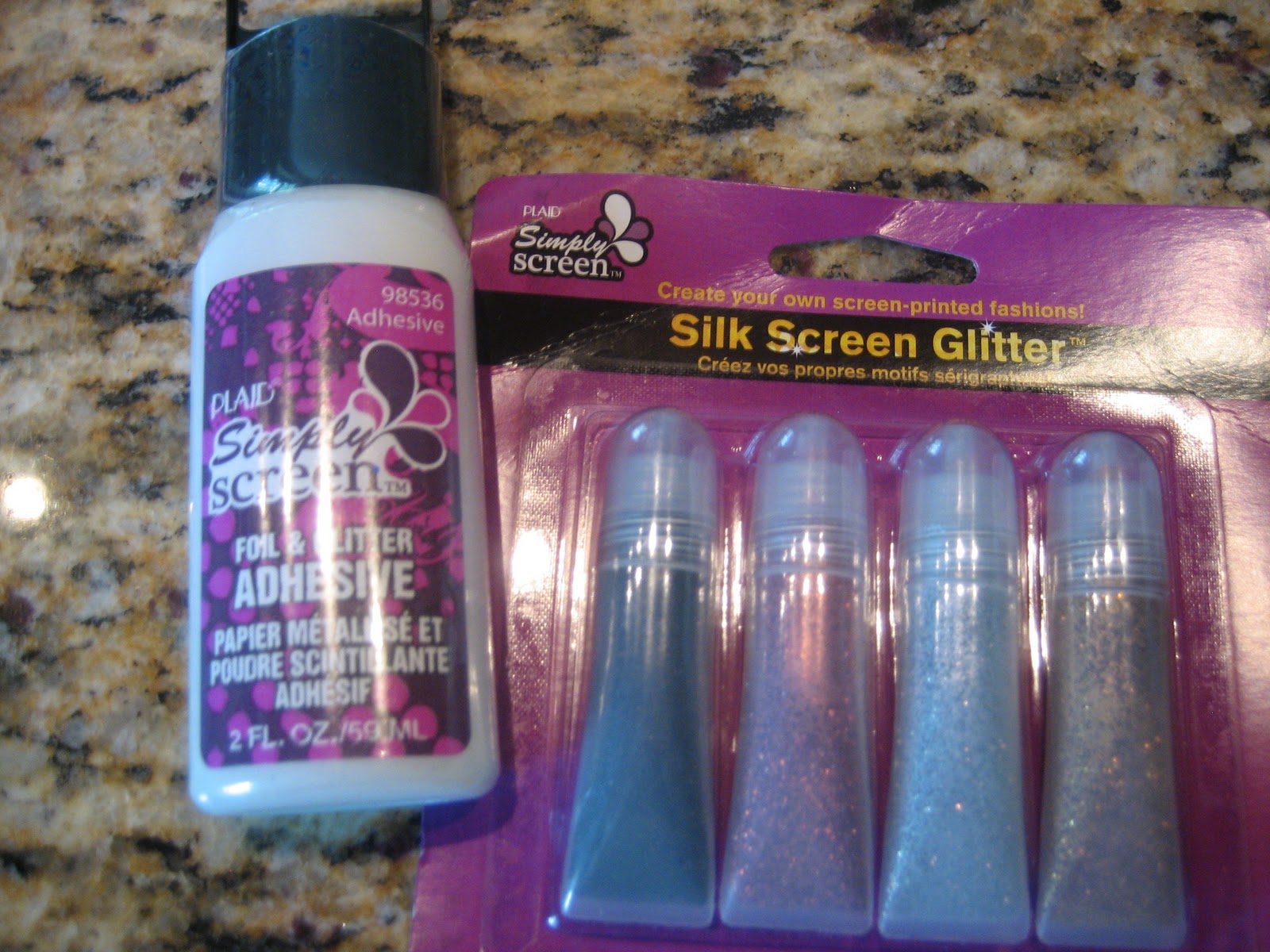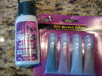 I saw an article in Family Fun Magazine about Plaid Simply Screening Glue to adorn fabrics. It seemed easy enough and I wanted to make a skating shirt for my daughter which most of the tutorial pictures. Obviously with extra supplies on hand I asked my daughter if she wanted to try one. Since I had the Metallic colors