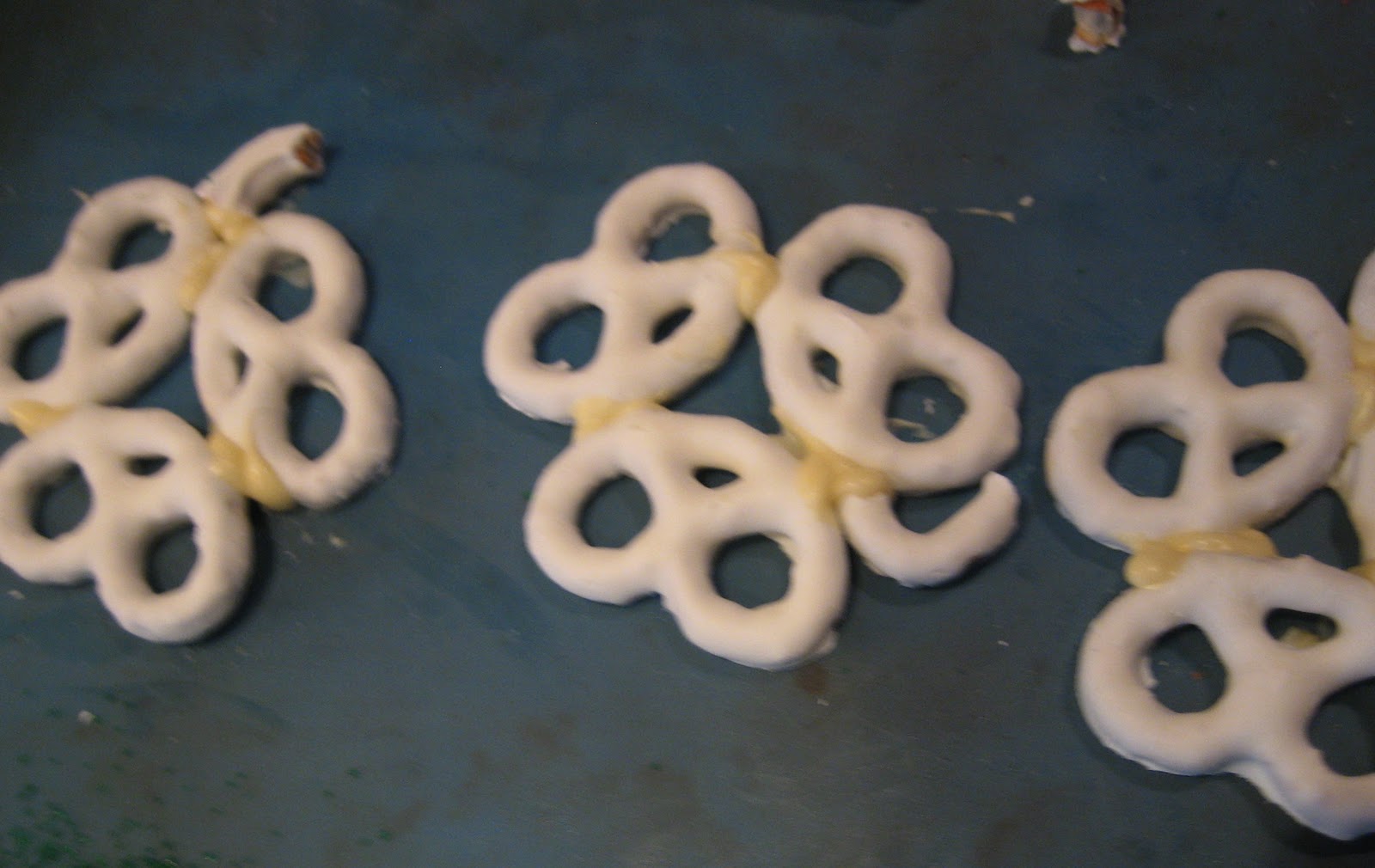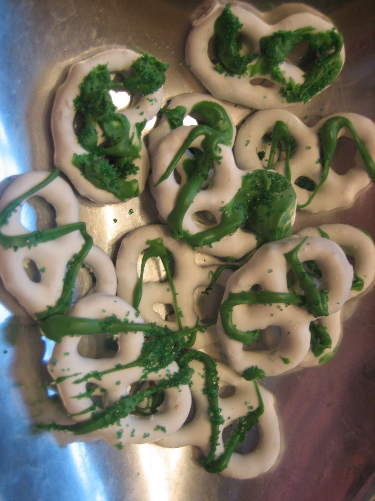 This month in honor of St. Patrick’s Day they made shamrocks out of no other than my favorite food crafting items, pretzels and chocolate.