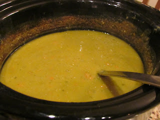 I improvised a little bit as I just dumped everything into the Crockpot in the am, emulsified the soup with a blender about 2 hours before serving and let it stay in the crockpot until we were all home for dinner
