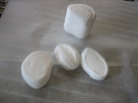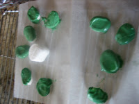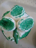 I had plenty of frosting left over so I thought I would microwave it for 30 to 45 seconds, dye it green and dip the cut up marshmallows into the frosting.