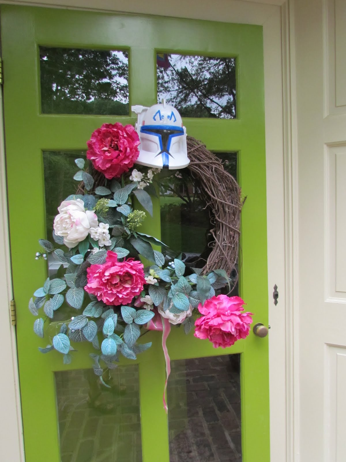Since most of this party was outside I really did not go all out for decorations. I placed a mask on my front door wreath. Bought black, red and green star balloons at the dollar store, love that place for balloons.