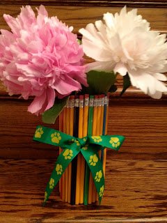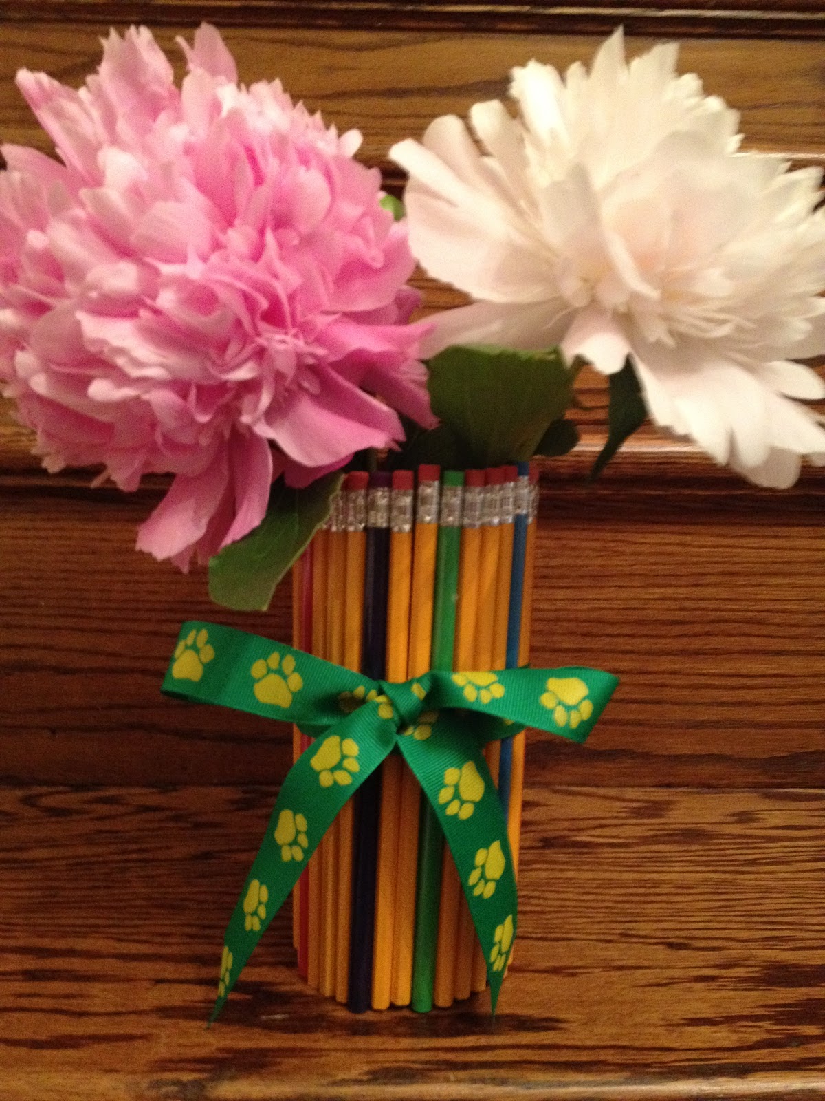 Since I am the room mom, I will send out a email asking folks if they have flowers in their garden to bring one in to make an arrangement for the teacher!
