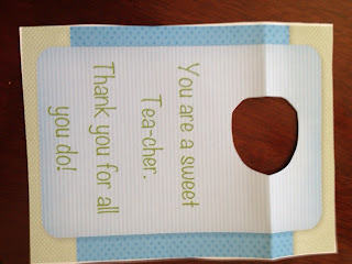 From http://www.skiptomylou.org/2011/04/12/printable-gift-bag-topper-teacher-appreciation/. The bag topper is printable you can choose to add baked goodies or anything you know your teacher will enjoy.