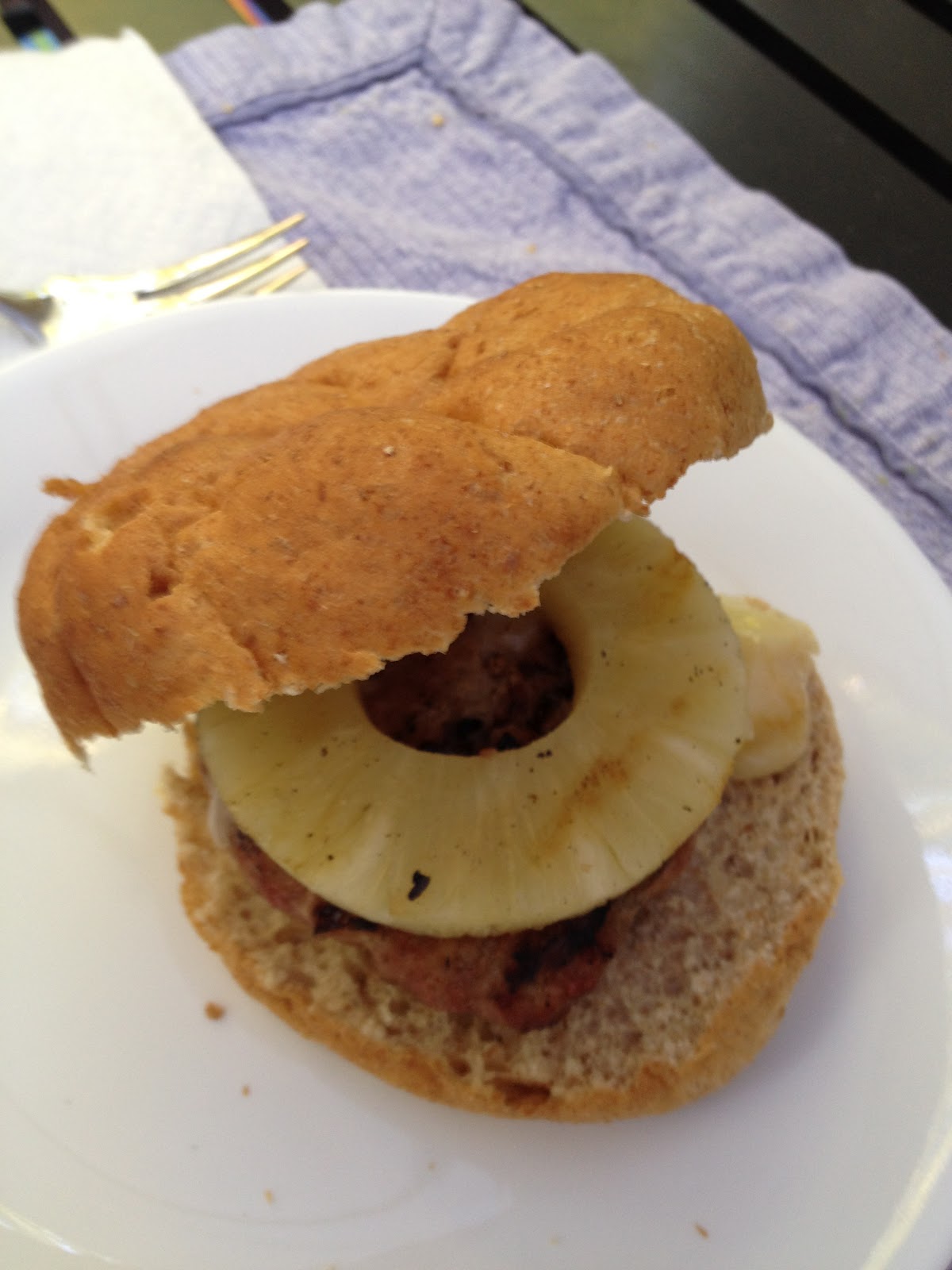 But wait almost forgot the fun ingredient of grilled pineapple. Never thought to grill canned before, worked perfectly.